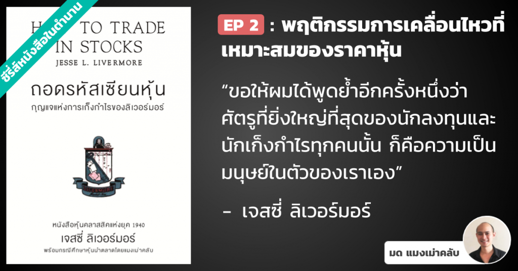 ขอให้ผมได้พูดย้ำอีกครั้งหนึ่งว่า ศัตรูที่ยิ่งใหญ่ที่สุดของนักลงทุนและนักเก็งกำไรทุกคนนั้น ก็คือความเป็นมนุษย์ในตัวของเราเอง – เจสซี่ ลิเวอร์มอร์